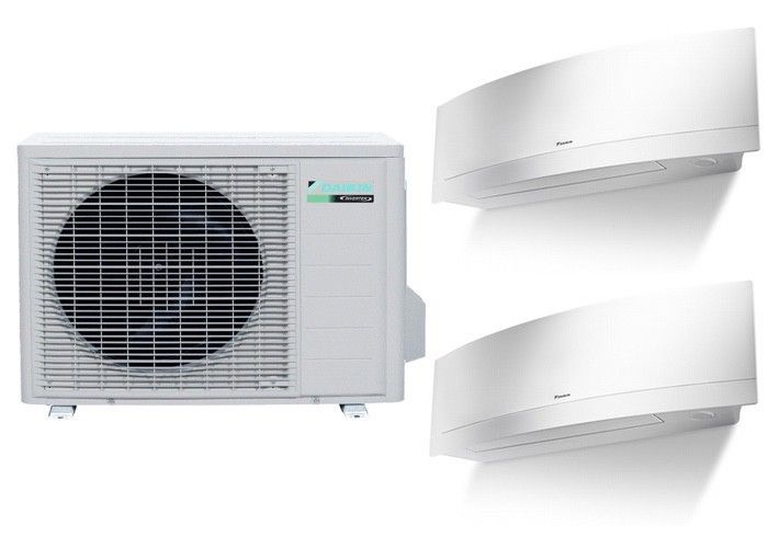 В мультисистеме к одному наружному блоку мощностью от 5 до 9 Квт подключают от 2 до 5 внутренних блоков класса Split и Sky, которые могут быть разного типа, производительности и установлены в разных помещениях. Одновременно они работают только в одном режиме — охлаждения или нагрева, но в каждом отдельном помещении можно задать и поддерживать свое значение температуры.