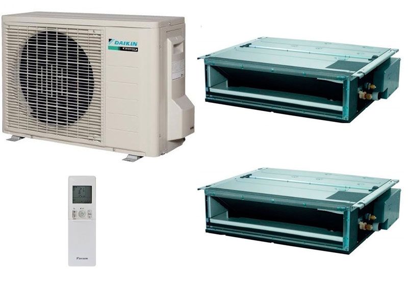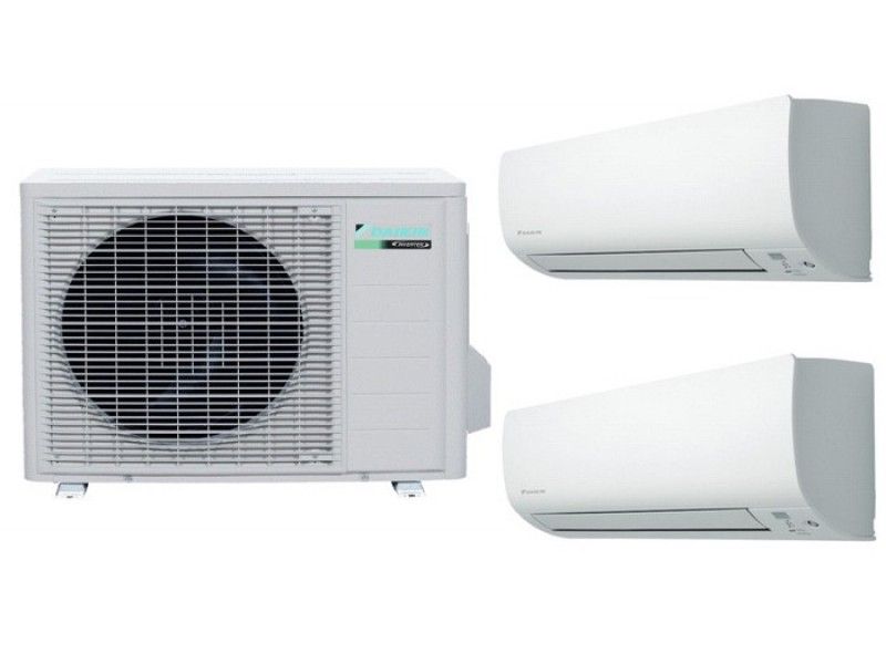 В мультисистеме Daikin 2MXS50H к одному наружному блоку производительностью 5.0 кВт подключают до 2-х внутренних блоков класса Split и SKY, которые могут быть разного типа, производительности и установлены в разных помещениях. Одновременно они работают только в одном режиме – охлаждения или нагрева, но в каждом помещении можно задать и поддерживать своё значение температуры.