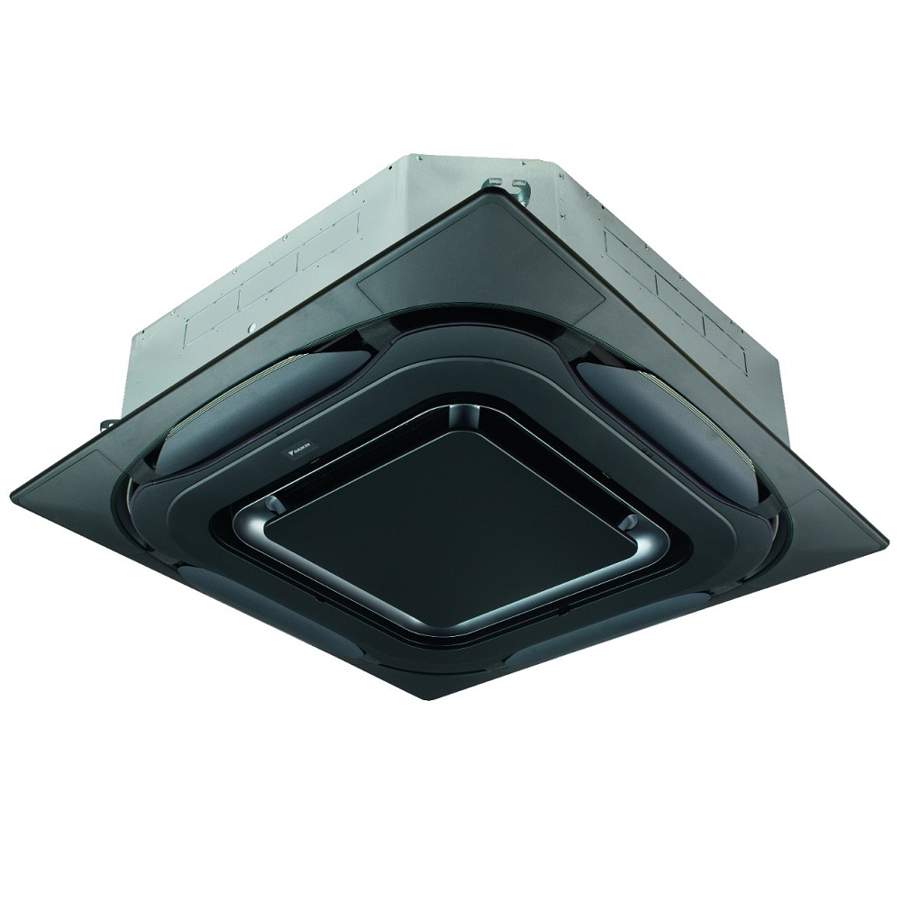 - Широкий выбор декоративных панелей. Стандартные панели: BYCQ140E (белого цвета с серыми заслонками, BYCQ140EW (белые), BYCQ140EB (черные); панели с функцией автоматической очистки фильтра (F – c улучшенным сетчатым фильтром): BYCQ140EGF (белые), BYCQ140EGFB (черные); дизайнерские: BYCQ140EP (белые), BYCQ140EPB (черные))